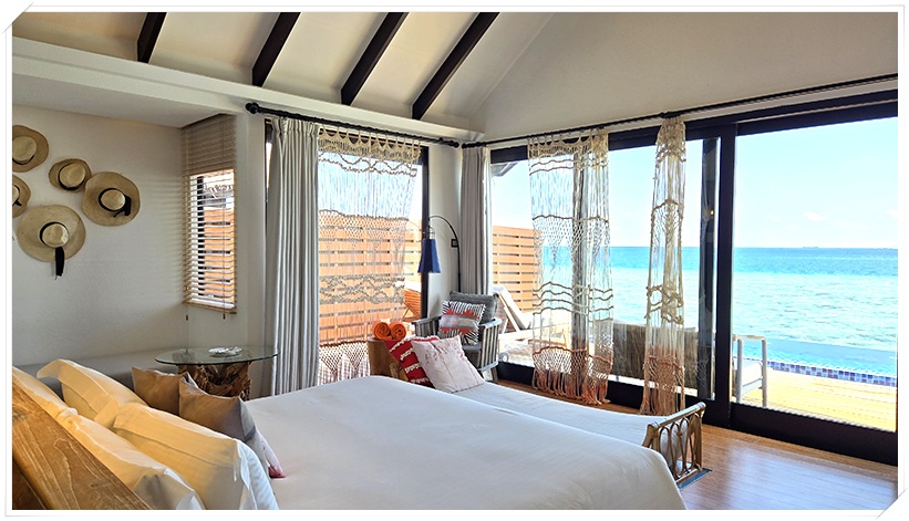 這間飯店的水上別墅分兩種:Reef Pool Water Villa(礁湖泳池水上別墅) 及 Lagoon Pool Water Villa(瀉湖泳池水上別墅),前者均有私人泳池,後者可選擇有或無私人泳池,但價差顯然不小。除此之外,亦有沙灘屋。