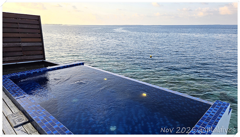 而換到瀉湖泳池水上別墅時又發生了些插曲,故當天又換了一次房間,也因此,此行算住了三個房間(Reef Pool*1 + Lagoon Pool*2)。